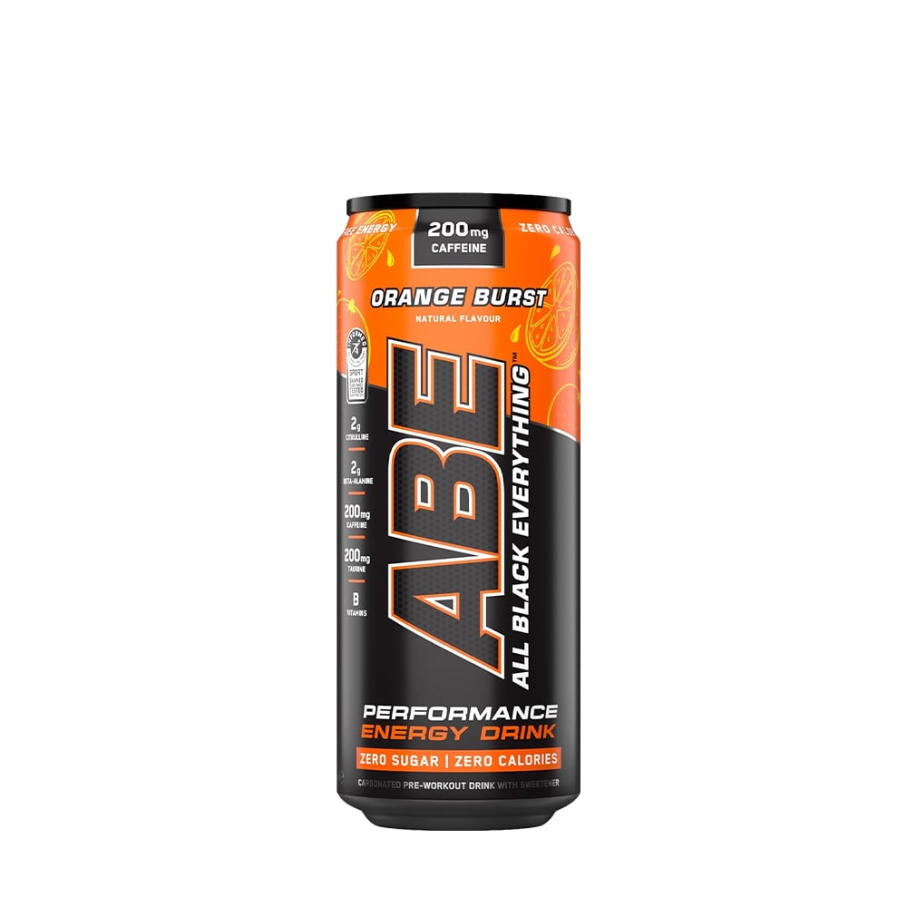 ABE - Energy + Performance là một loại thức uống tăng lực trước tập (Pre-Workout) dạng lon có ga, được sản xuất bởi thương hiệu Applied Nutrition từ Anh Quốc. Mỗi lon 330ml cung cấp một hỗn hợp các hoạt chất mạnh mẽ như 200mg Caffeine, 2g Beta-Alanine và 2g Citrulline, giúp tăng cường năng lượng, sự tập trung và hiệu suất thể chất ngay lập tức.