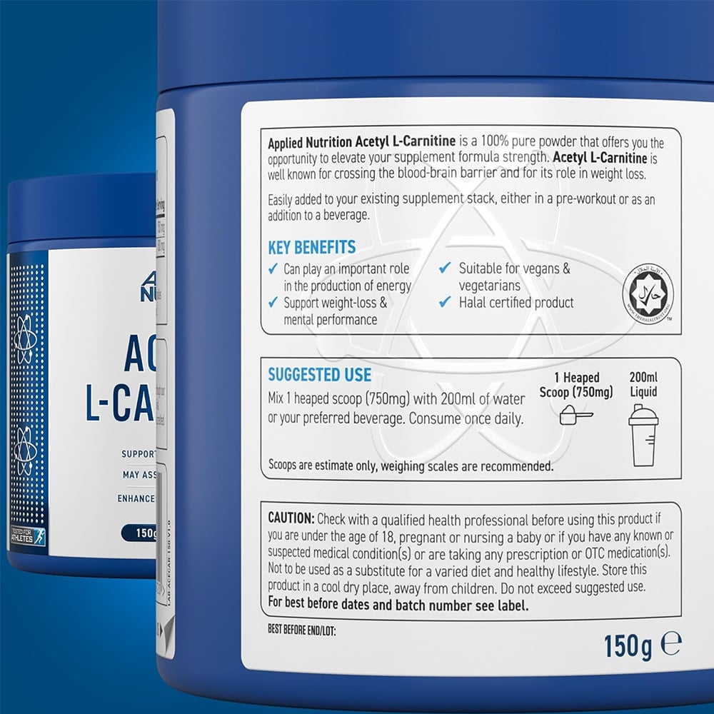Mỗi khẩu phần Applied Nutrition Acetyl L-Carnitine Powder 150g cung cấp 2000mg Acetyl L-Carnitine tinh khiết, hấp thụ vượt trội và đi qua được hàng rào máu não giúp tăng sự tập trung, tỉnh táo và cải thiện tâm trạng.