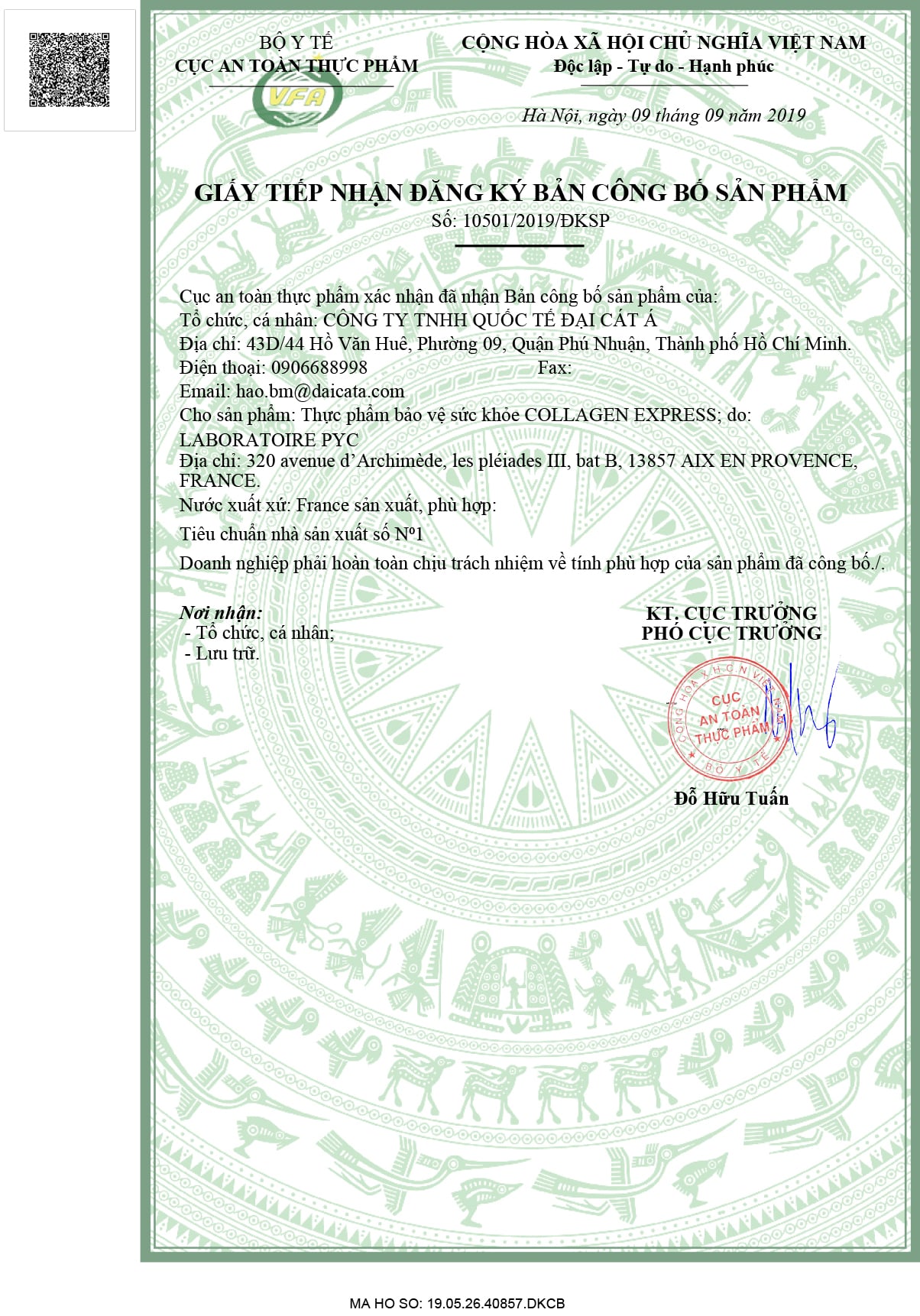 ✅ Giấy tiếp nhận đăng kí công bố sản phẩm số: 10501/2019/ĐKSP