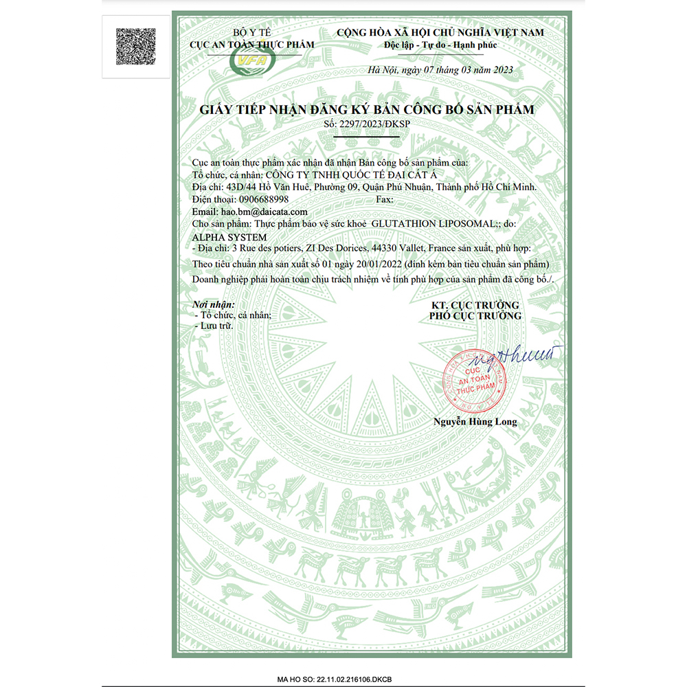 - Công nghệ Liposome từ Pháp: Bọc hoạt chất trong lớp phospholipid kép, tăng hấp thu Glutathione qua đường tiêu hóa.
