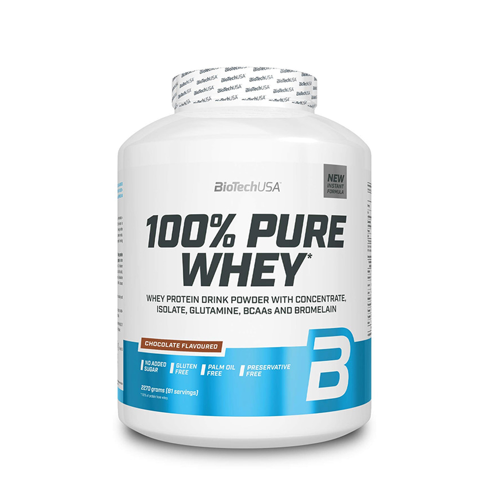 BioTechUSA 100% Pure Whey là dòng Whey Protein chất lượng cao kết hợp giữa Whey Concentrate và Whey Protein Isolate, mang đến nguồn protein tinh khiết, giàu axit amin thiết yếu (EAA, BCAA) hỗ trợ phát triển cơ bắp tối ưu. Sản phẩm còn bổ sung enzyme Bromelain hỗ trợ tiêu hóa và hấp thu protein nhanh, dễ dàng hơn. Ngoài ra, sản phẩm ít đường, không gluten, không dầu cọ, không chất bảo quản, phù hợp với nhiều chế độ dinh dưỡng lành mạnh. Dạng hộp lớn 5 lbs (~2,27 kg) cung cấp tới 81 khẩu phần, tiện lợi và tiết kiệm cho người tập luyện lâu dài.