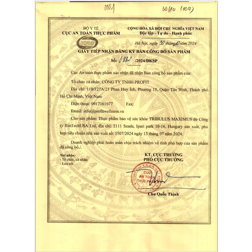Thành phần chính | Tribulus terrestris extract 1500 mg (79% saponin) |