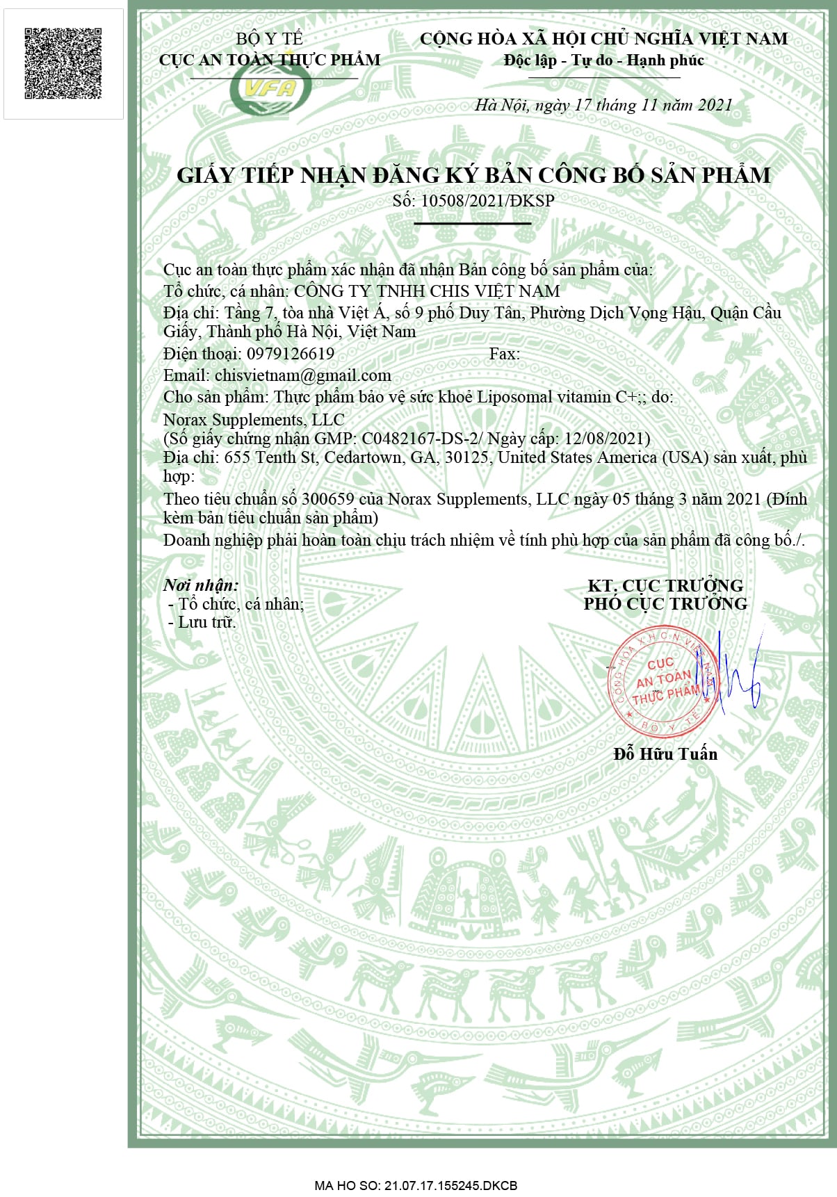 ✅ Giấy tiếp nhận đăng kí công bố sản phẩm số: 10508 /2021/ĐKSP