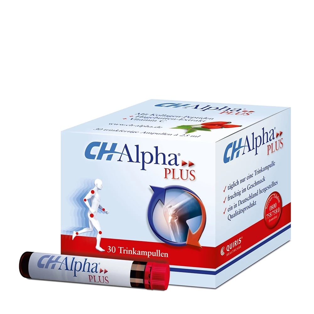 Collagen CH Alpha PLUS là thực phẩm bảo vệ sức khỏe dạng nước uống, chứa 5.000 mg collagen peptides type II mỗi ống, được sản xuất bởi Quiris Healthcare tại Đức. Sản phẩm được thiết kế để bổ sung dưỡng chất cho sụn khớp, hỗ trợ duy trì khớp dẻo dai và linh hoạt.