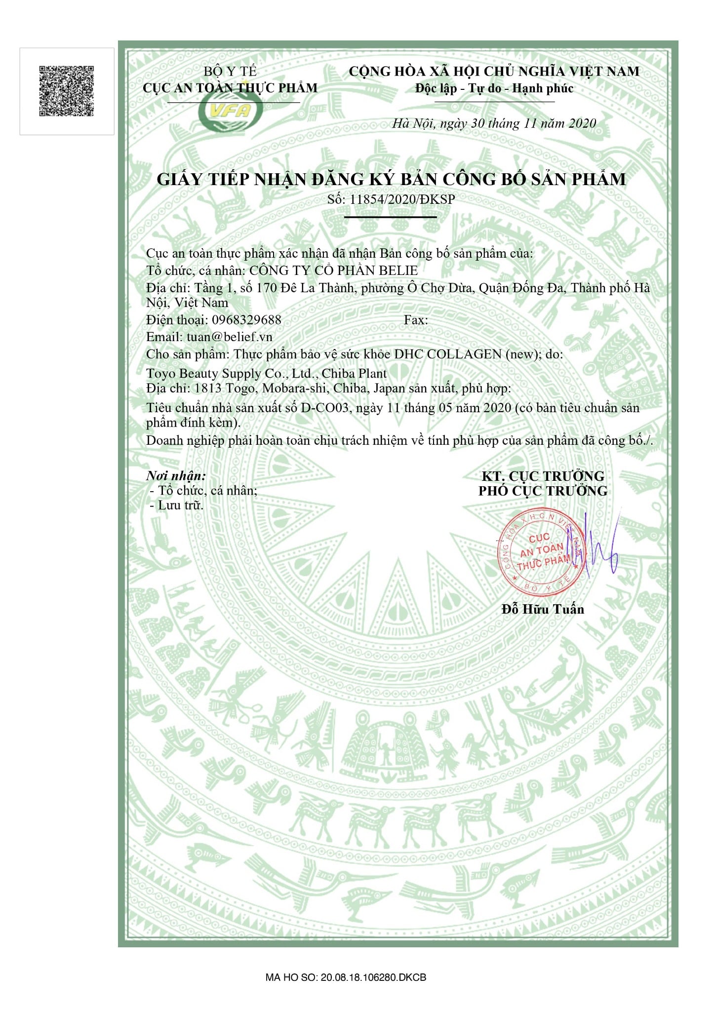 ✅ Giấy tiếp nhận đăng kí công bố sản phẩm số: 11854/2020/ĐKSP