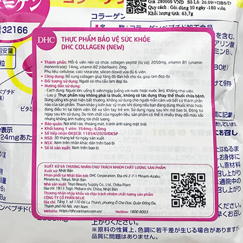Tái sinh làn da mịn màng, săn chắc với Viên Uống DHC Collagen 2050mg. Công nghệ Collagen Peptide từ cá giúp tăng khả năng hấp thụ gấp 7 lần, nuôi dưỡng da và xương khớp từ sâu bên trong. Mua ngay tại Whey Tốt - Đại lý phân phối chính hãng DHC, giá tốt nhất.