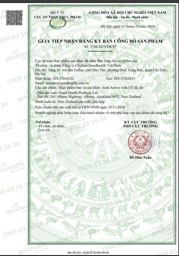 Đặc biệt, Joint Active with UC-II được sản xuất tại New Zealand, đáp ứng các tiêu chuẩn nghiêm ngặt về chất lượng và độ an toàn của thực phẩm bổ sung cao cấp.