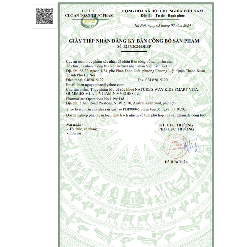 Số đăng ký tiếp nhận công bố sản phẩm: 5257/2027/ĐKSP