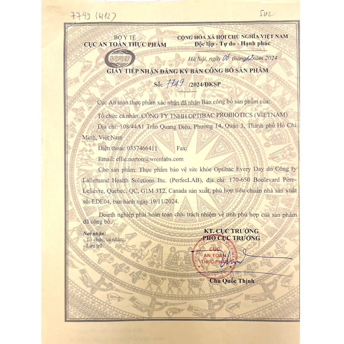 ✅ Sản phẩm có Giấy tiếp nhận đăng kí bản công bố số: 7749/2024/ĐKSP
