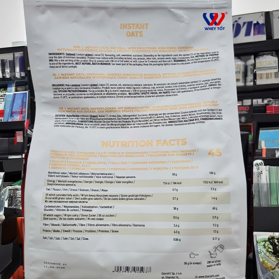 Để sở hữu OstroVit Instant Oats Flakes 45 Servings chính hãng với mức giá tốt nhất, hãy liên hệ với Whey Tốt ngay hôm nay nhé.