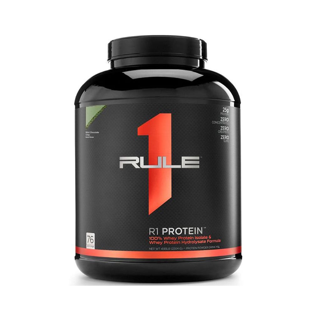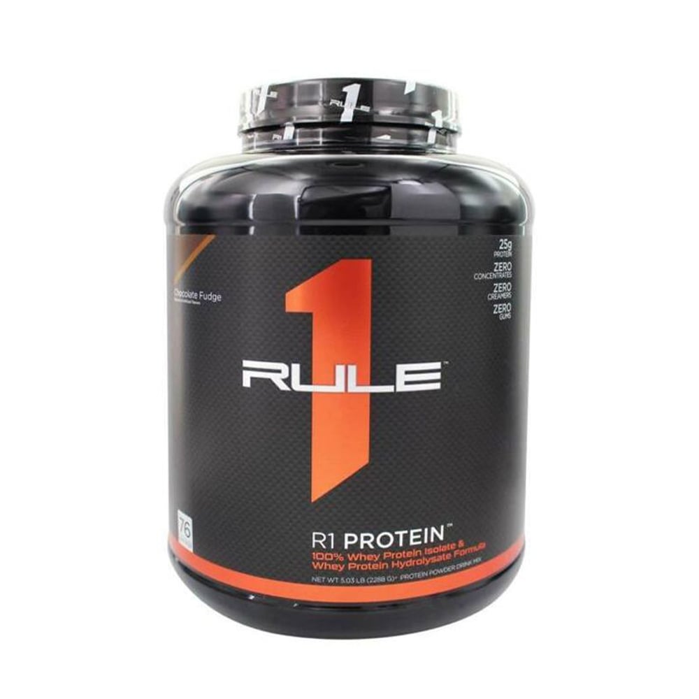 R1 Protein là sản phẩm whey protein của thương hiệu Rule One (Rule 1) - 2.27kg / 5Lbs / 76 serving, cung cấp 100% whey isolate tinh khiết và whey hydrolyzed (thủy phân) giúp hấp thu nhanh, hiệu quả. Hiện nay, Rule 1 R1 Protein có hương vị chocolate fudge, cafe mocha thơm ngon, dễ uống.