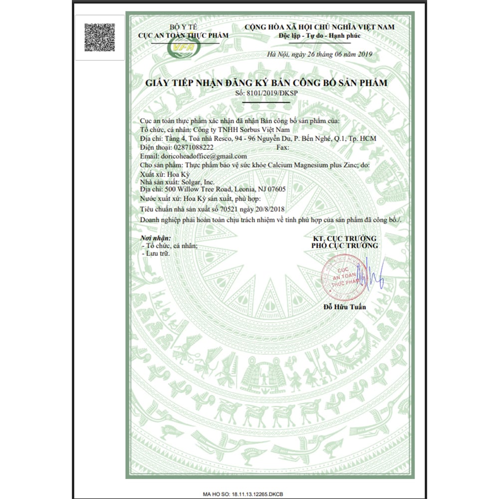 Thành phần & công thức nổi bật của Solgar Calcium Magnesium Plus Zinc