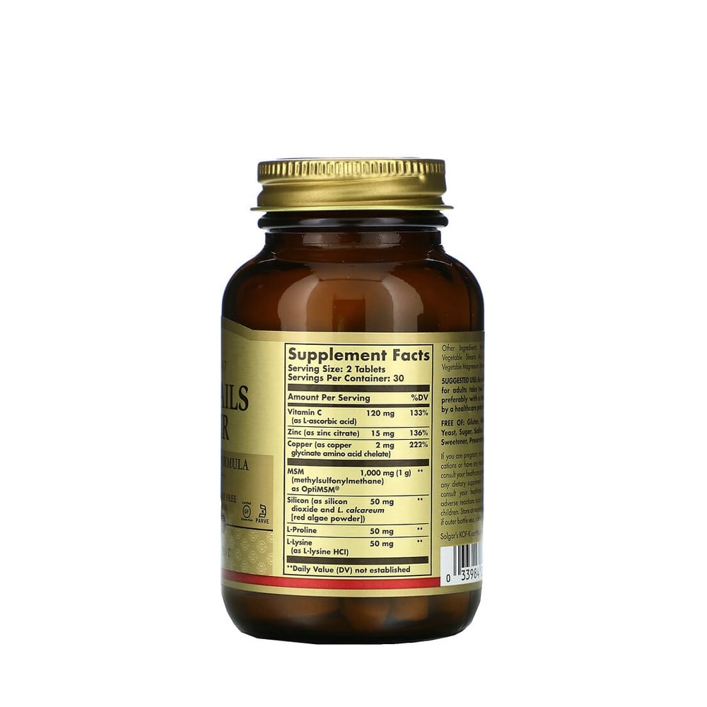 Điểm nổi bật của công thức là sự hiện diện của 1000mg MSM (Methylsulfonylmethane), một nguồn cung cấp lưu huỳnh hữu cơ dồi dào. Thành phần này kết hợp với Vitamin C, Kẽm, Đồng và các axit amin L-Proline, L-Lysine tạo nên một ma trận dinh dưỡng toàn diện cho tóc, da và móng.