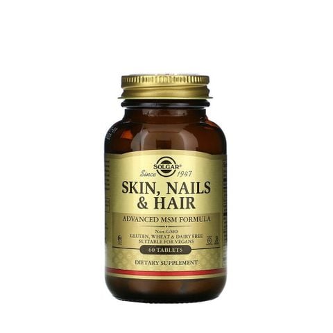 Solgar Hair, Skin & Nails là viên uống bổ sung dinh dưỡng, cung cấp các thành phần thiết yếu như MSM, Vitamin C, và Kẽm. Công thức này được thiết kế để hỗ trợ cơ thể sản xuất collagen và keratin, những khối xây dựng cơ bản của tóc, da và móng.