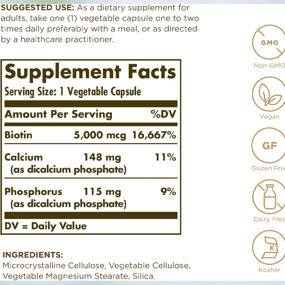 1. Solgar Biotin 5000 MCG: Nền Tảng Cho Vẻ Đẹp Từ Bên Trong