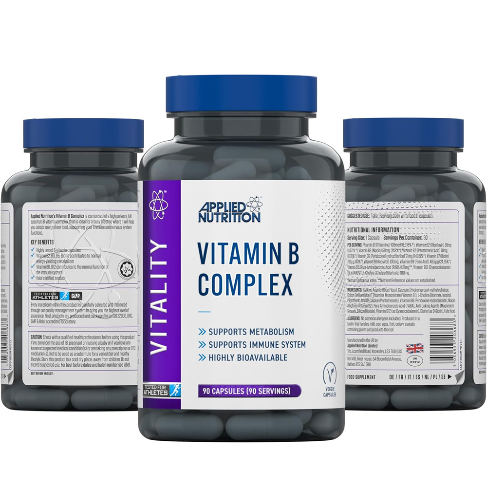 Vitality Vitamin B Complex Multivitamin là sản phẩm vitamin tổng hợp đến từ thương hiệu Applied Nutrition - 90 viên / 90 servings, cung cấp vitamin B phức hợp gồm 7 loại vitamin nhóm B thiết yếu giúp giảm mệt mỏi, tăng cường năng lượng và hệ miễn dịch, hỗ trợ chức năng hệ thần kinh. Hiện nay, Applied Nutrition Vitamin B Complex Multivitamin được thiết kế dưới dạng viên nang tiện lợi, dễ uống.