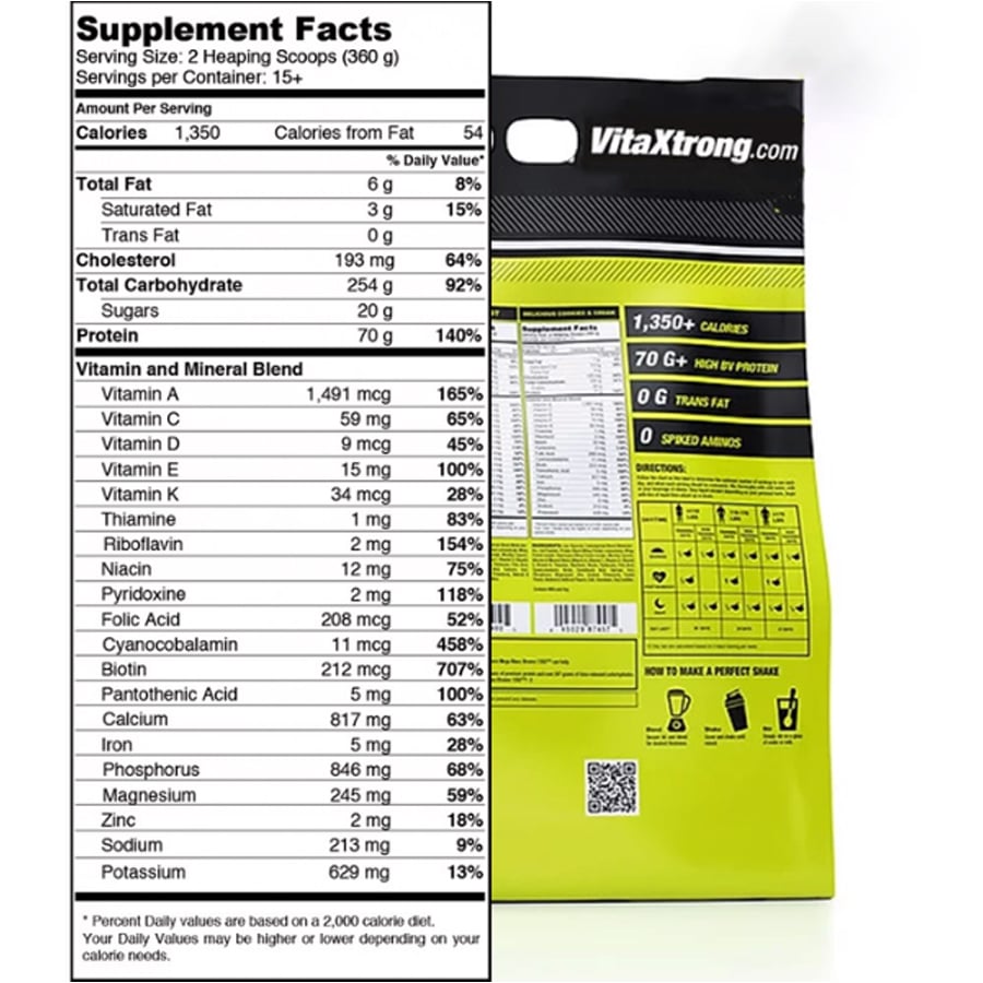 Thành phần dinh dưỡng trong Vitaxtrong Mega Mass Pro