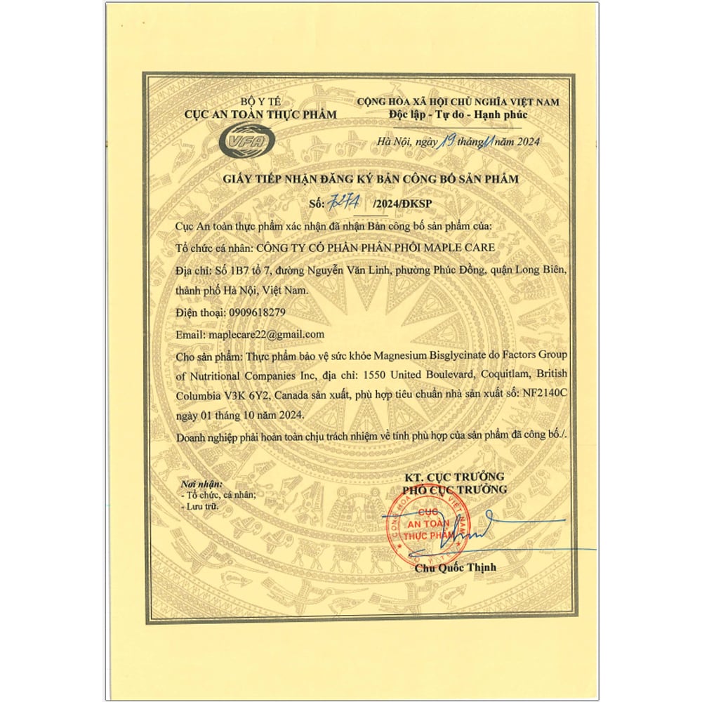 Sản phẩm có giấy tiếp nhận đăng kí bản công bố sản phẩm số: 7274/2024/ĐKSP
